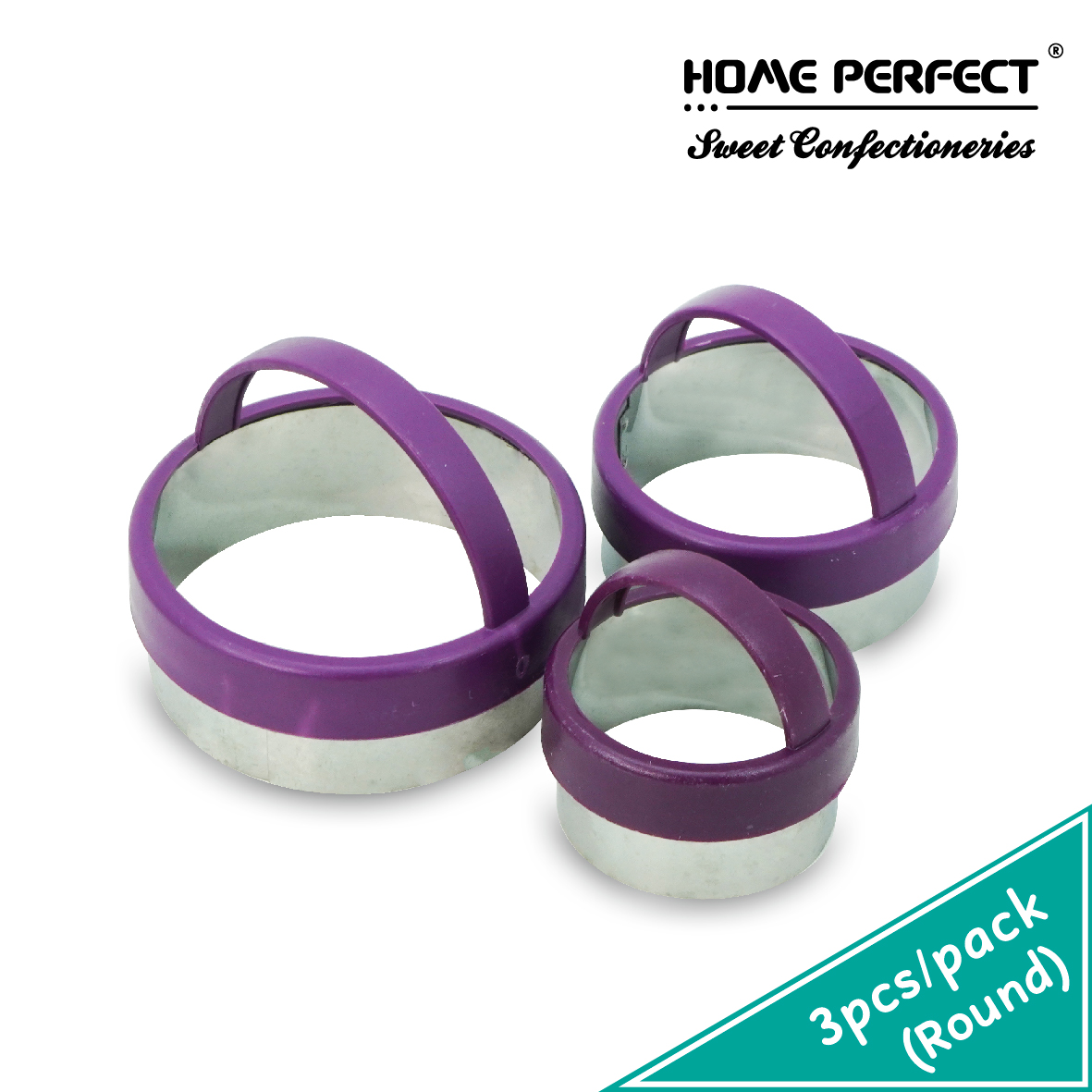 HOME PERFECT 3Pcs/Pack S/S Stackable Round/Wave Flated Edge Cookies Scone Cutter W/Handle, Acuan Biskut, WY-PCC0105