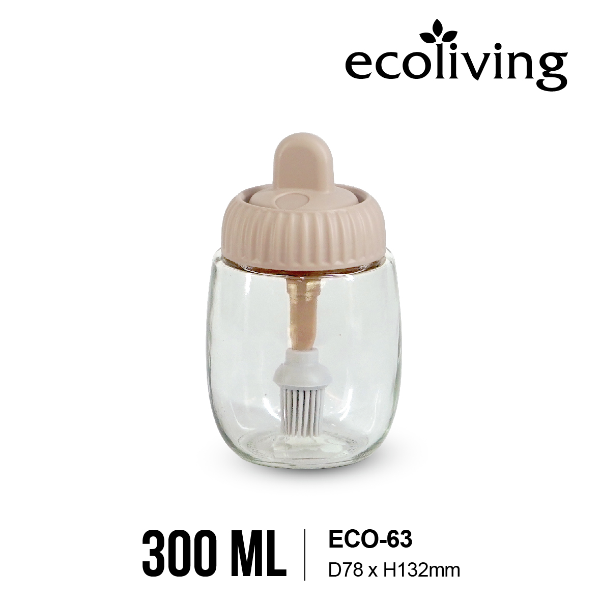 ECO LIVING 300ML Kitchen Glass Condiment Bottle With Brush,Spice Seasoning Bottle,Bekas Rempah Ratus Berberus, ECO-63
