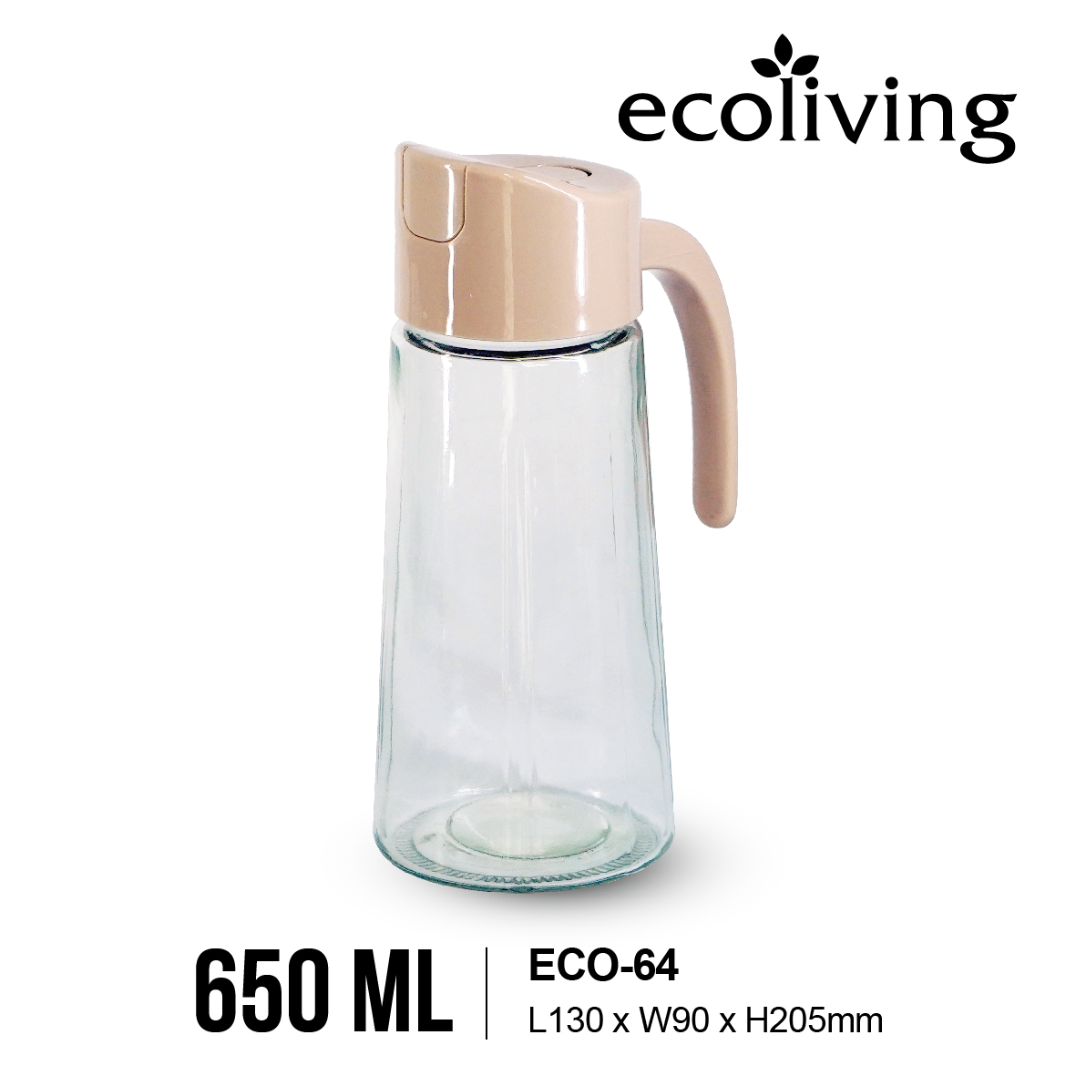 ECO LIVING 650ml Kitchen Glass Condiment Jar With Handle/Cover, Spice Seasoning Oil Bottle, Bekas Minyak, ECO-64